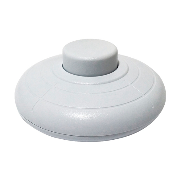 Interruptor de paso para intercalar en el cable de manera muy sencilla. Se corta el cable y se conectan los hilos en los dos extremos del interruptor. Para dejar en el suelo y accionarlo con el pie.