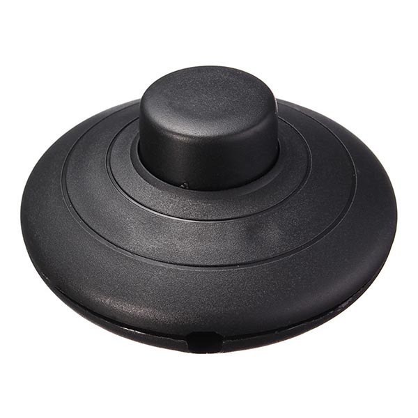 Interruptor de paso para intercalar en el cable de manera muy sencilla. Se corta el cable y se conectan los hilos en los dos extremos del interruptor. Para dejar en el suelo y accionarlo con el pie.