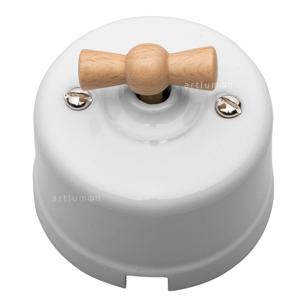Interruptor porcelana lazo madera clara