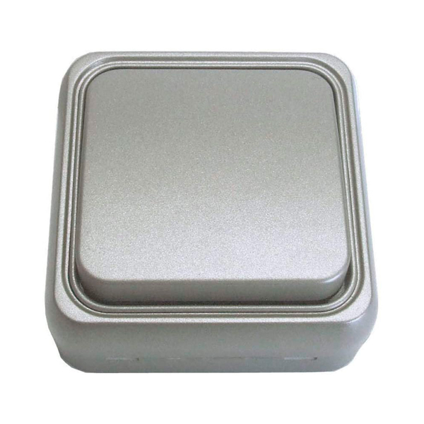 Interruptor conmutado para superficie, de color aluminio.