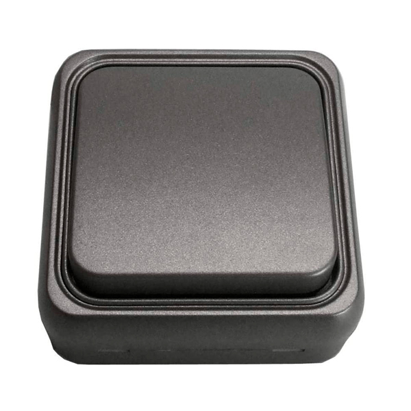 Interruptor conmutado para superficie, de color grafito.