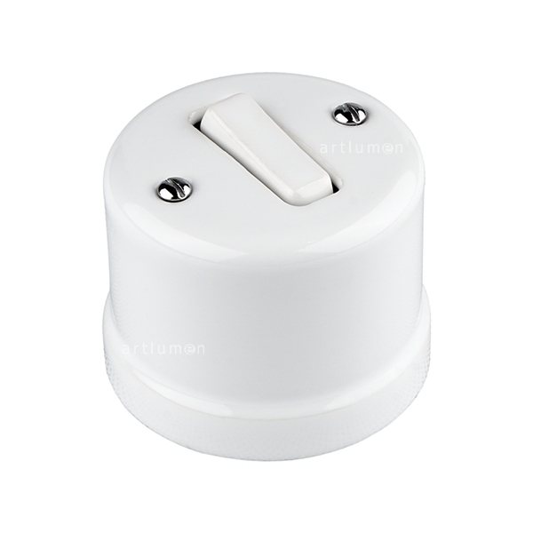 Interruptor, de mecanismo conmutado, con tecla basculante de porcelana blanca para instalación en superficie.