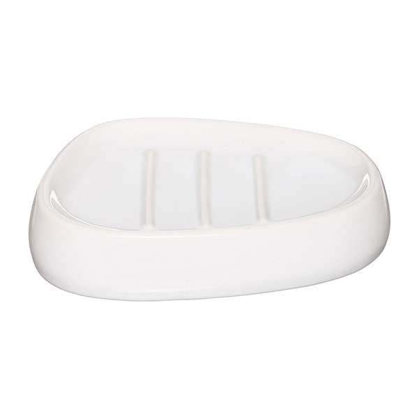 Jabonera fabricada en porcelana de color blanca, soporte de superficie para pastilla de jabón.