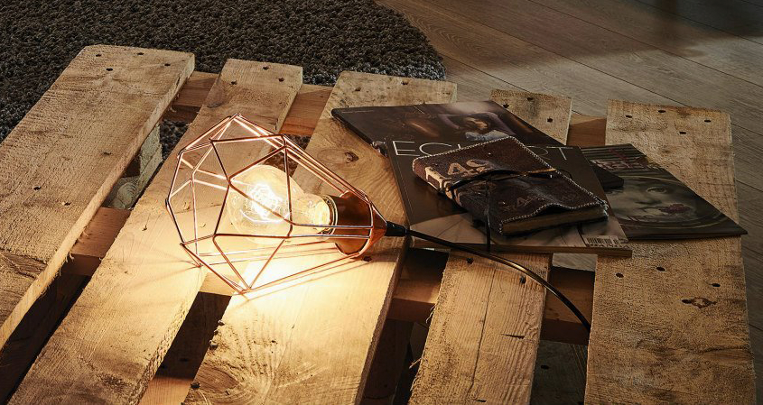 Rejilla metálica en forma de “jaula” para usar como pantalla. Decoración vintage muy actual.