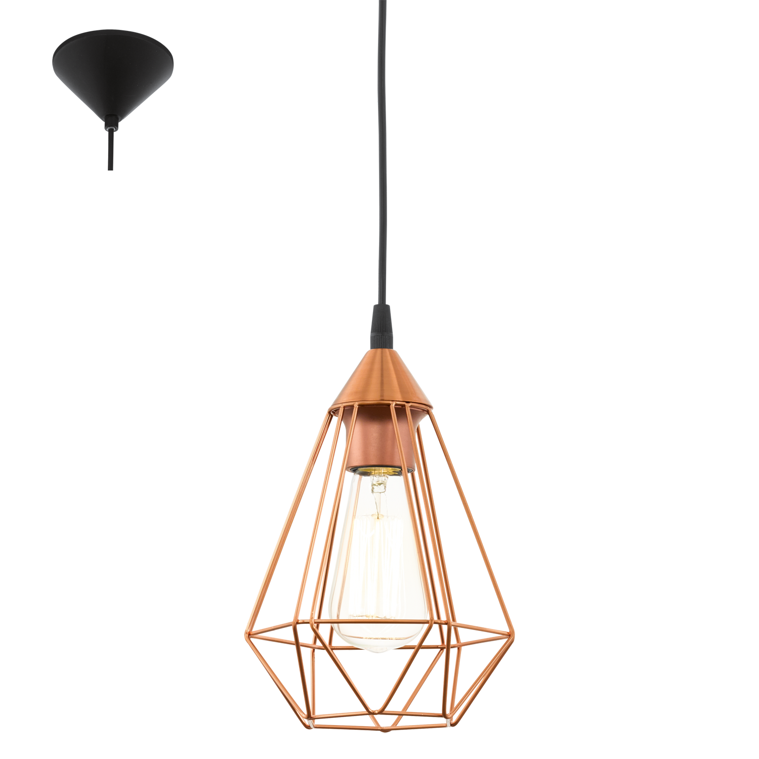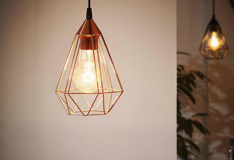 Incluye colgante con cable de color negro, florón de techo negro y sujeción de jaula metálico en acabado cobre (del mismo color que la jaula).