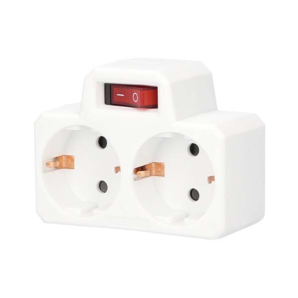 Clavija de enchufe con dos bases que incorpora un interruptor con indicador luminoso para desconectar los aparatos enchufados.