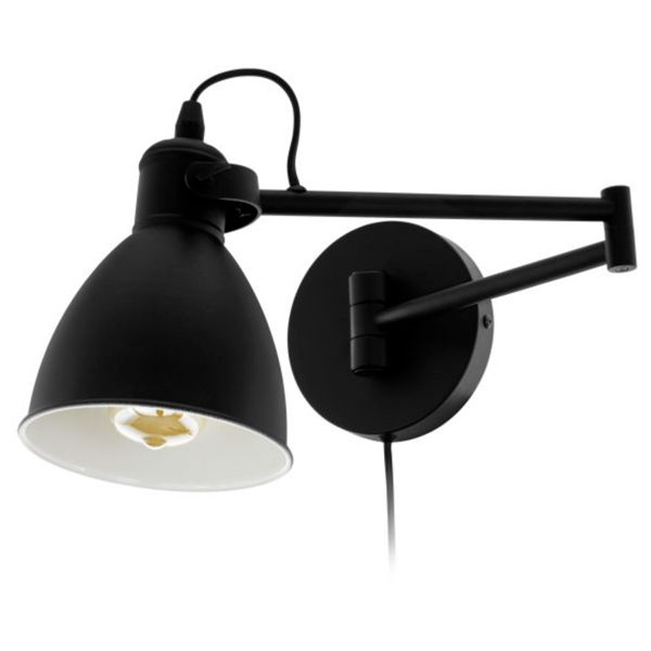 Lámpara de pared articulada fabricada en acero, de color negro. Su brazo de metal se puede mover a derecha e izquierda desde dos puntos, consiguiendo al mismo tiempo acercarla o separarla de la pared. Pantalla metálica con interior blanco para mejorar la iluminación. Ideales para el hogar, tiendas, cafeterías, etc.