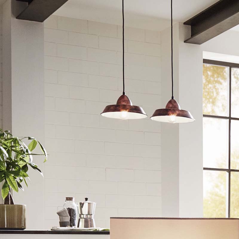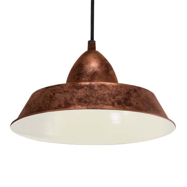 Esta lámpara colgante está formada por una pantalla cónica de metal en cobre antiguo con interior en color crema. La lámpara va con una suspensión de metal del mismo color y un cable negro. Esta lámpara de diseño vintage encaja a la perfección en las tendencias modernas y ofrece una agradable iluminación de su estancia, ya sea en el salón o sobre la mesa del comedor. La lámpara es apta para cualquier bombilla con casquillo E27.