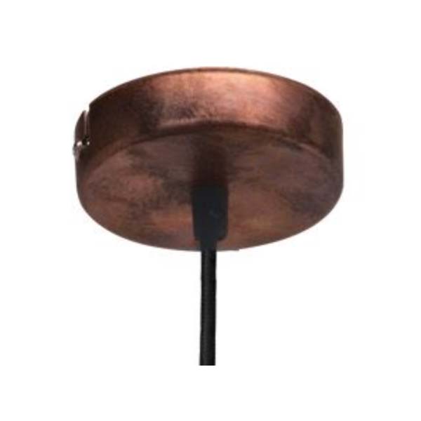 Esta lámpara colgante está formada por una pantalla cónica de metal en cobre antiguo con interior en color crema. La lámpara va con una suspensión de metal del mismo color y un cable negro. Esta lámpara de diseño vintage encaja a la perfección en las tendencias modernas y ofrece una agradable iluminación de su estancia, ya sea en el salón o sobre la mesa del comedor. La lámpara es apta para cualquier bombilla con casquillo E27.