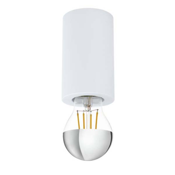 Moderna lámpara de techo minimalista. Cilindro liso de acero en color blanco mate. Ideal para decoraciones en baño, recepciones, pasillos, etc.