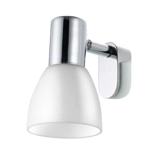 Fabricada en acero cromado con una pantalla de cristal opalino mate. Su brazo gira 360º para poder orientar la pantalla.