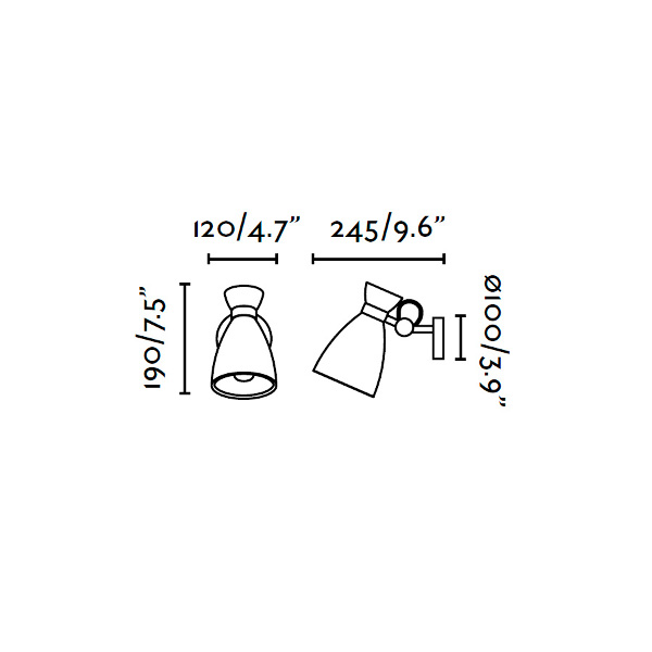 Lámpara para fijar en la pared fabricada en metal con acabado cobre. De pantalla orientable para poder dirigir la luz. Incorpora un interruptor en su base.