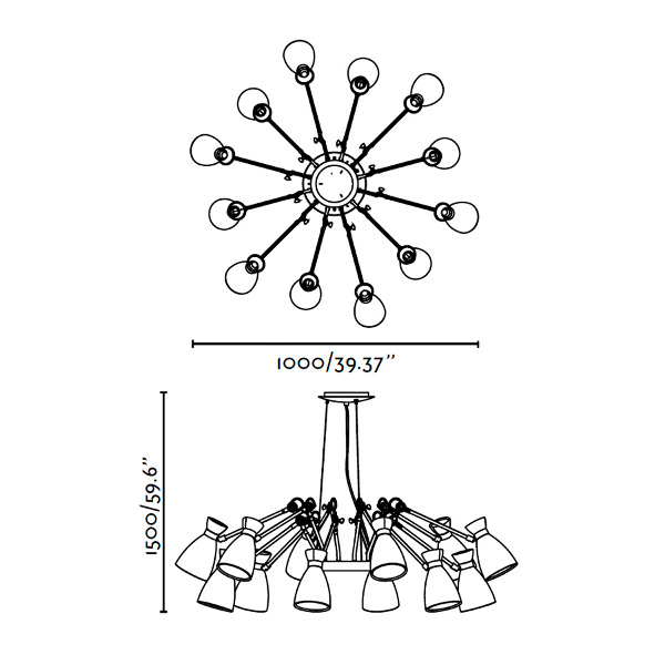Lámpara de techo 12 brazos RETRO