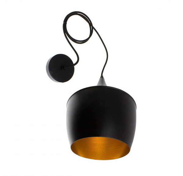 Fabricada en aluminio de color negro, acabado mate, que contrasta con su interior dorado.