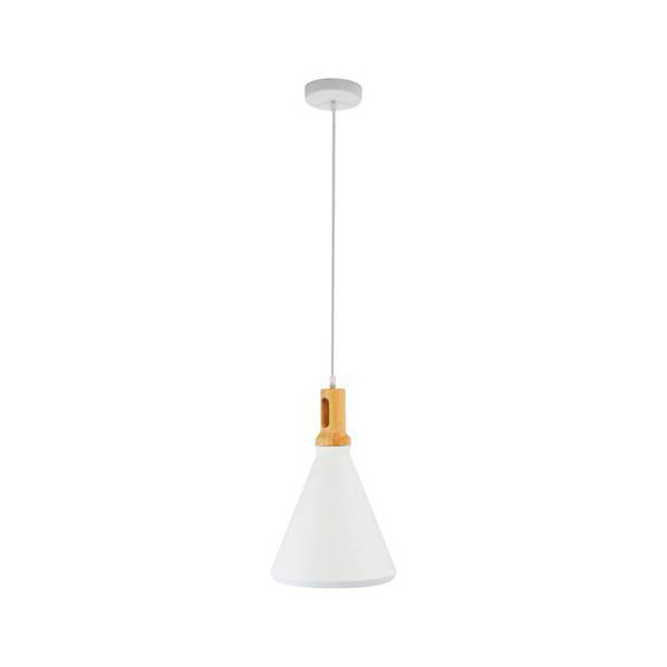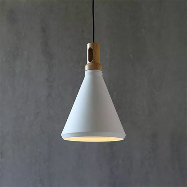 Lámpara de techo de diseño escandinavo, de líneas limpias, muy funcional. Pantalla de aluminio de color blanco mate, rematada con un embellecedor de madera natural. Su estilo nórdico, sencillo y funcional, encaja en decoraciones contemporáneas y retro.