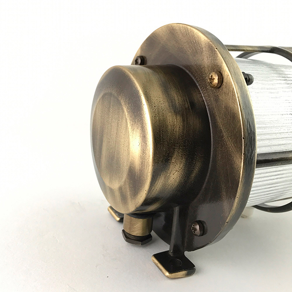 Lámpara muy robusta, de aspecto industrial, fabricada en latón.