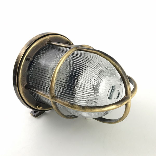 Lámpara muy robusta, de aspecto industrial, fabricada en latón.