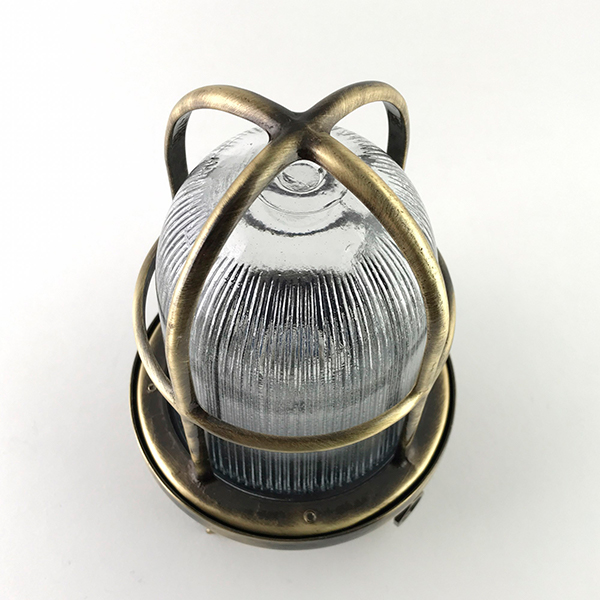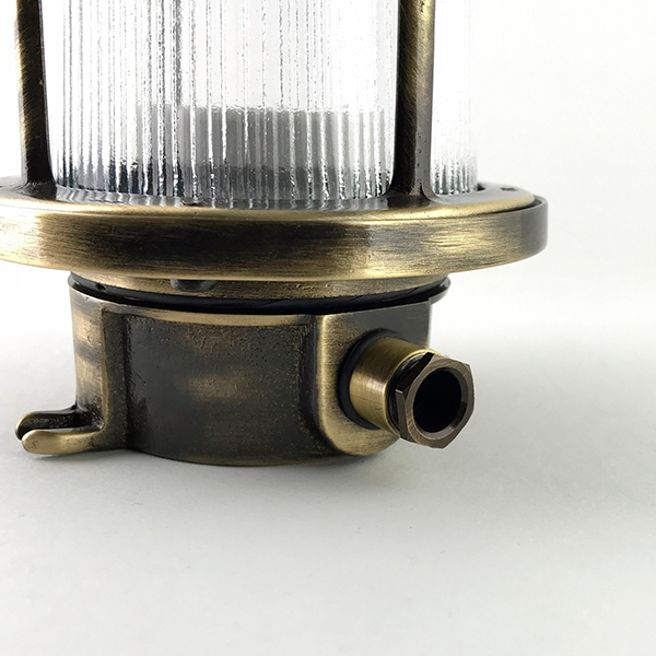 Lámpara muy robusta, de aspecto industrial, fabricada en latón.