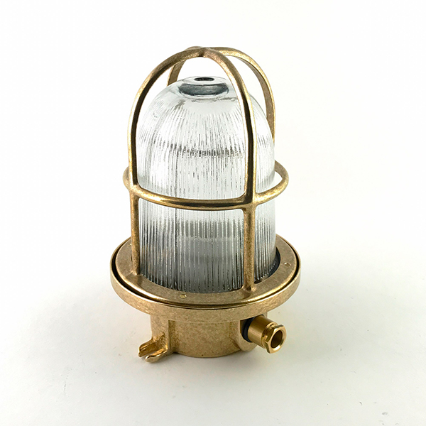 Lámpara muy robusta, de aspecto industrial, fabricada en latón.