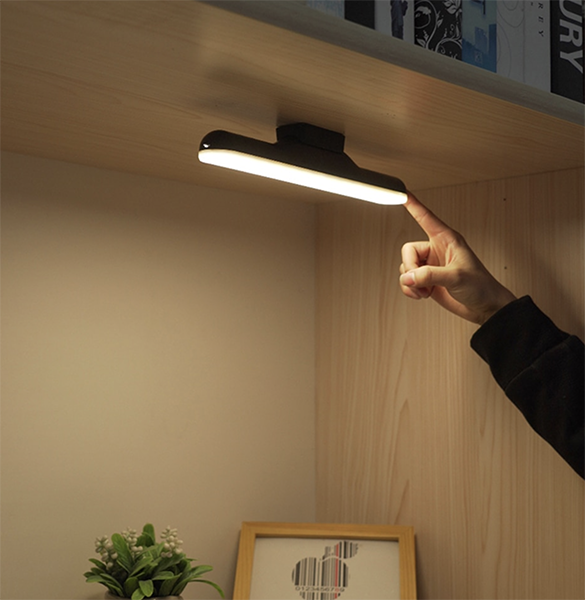 Lámpara LED recargable con base magnética. Ideal para escritorios, bajo muebles, automóvil, excursiones, etc.
