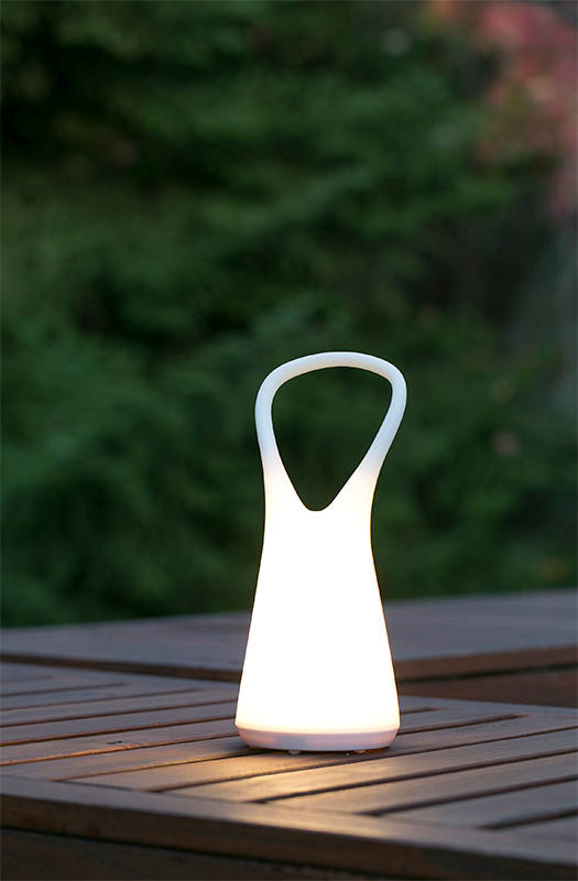 Original lámpara de sobremesa decorativa de LED. Portátil, con asa integrada en su diseño para transportar fácilmente. Se enciende por tacto (Touch Lamp) y es regulable en tres intensidades.