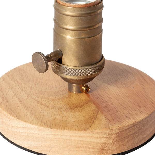 Lámpara de sobremesa de estilo nórdico. Diseño minimalista. Fabricada con materiales que aportan calidez, base de madera clara y portalámparas de latón. Cable de conexión trenzado textil de color negro (1m). Casquillo para bombillas de rosca E-27 con interruptor rotativo en un lateral, permite encender y apagar la bombilla desde este mecanismo. Esta lámpara es ideal para lucir una de nuestras bombillas decorativas LED.