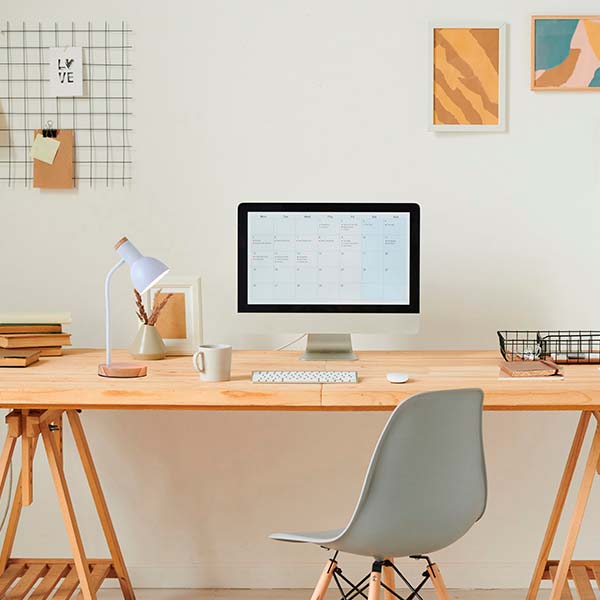 Lámpara de sobremesa de color blanca con base y detalles en madera clara.