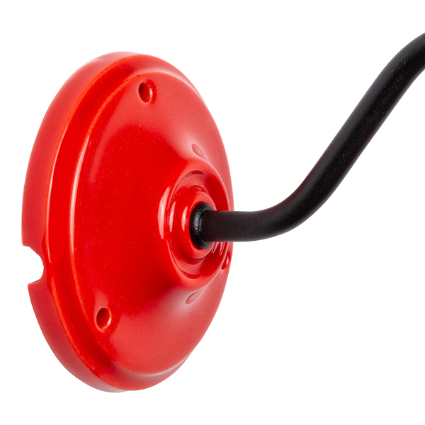Lámpara aplique para pared con brazo metálico lacado en color blanco o negro. En su diseño se mezcla el clásico brazo curvado con el toque moderno del portalámparas de porcelana en atrevidos colores (rojo o amarillo intenso). De líneas suaves, este aplique brilla en cualquier rincón. Al ir la bombilla totalmente al descubierto, es un aplique ideal para lucir una de nuestras bombillas decorativas. Recomendamos la bombilla globo LED de 95mm de diámetro.