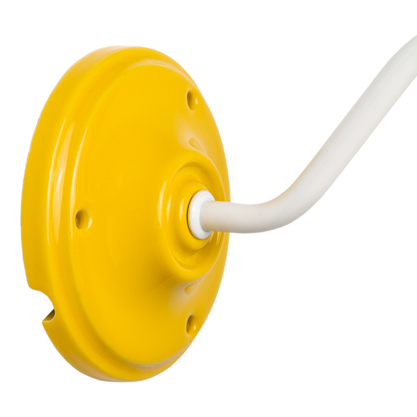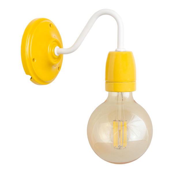 Lámpara aplique para pared con brazo metálico lacado en color blanco o negro. En su diseño se mezcla el clásico brazo curvado con el toque moderno del portalámparas de porcelana en atrevidos colores (rojo o amarillo intenso). De líneas suaves, este aplique brilla en cualquier rincón. Al ir la bombilla totalmente al descubierto, es un aplique ideal para lucir una de nuestras bombillas decorativas. Recomendamos la bombilla globo LED de 95mm de diámetro.