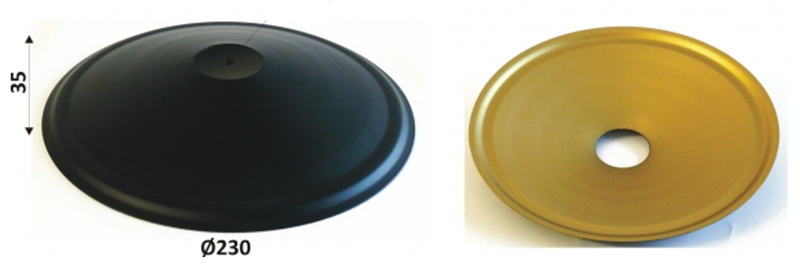 Dimensiones: Plato: d=230mm, altura=35mm. Florón de techo: d=99mm, altura=24mm