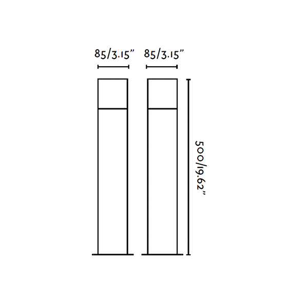 Dimensiones: Largo=85mm, Ancho=85mm, Alto=500mm