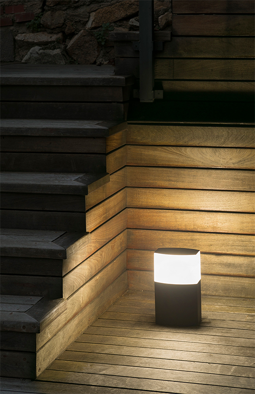 De líneas rectas y lisas este poste de suelo es elegante y discreto. Fabricado en aluminio inyectado y un difusor de policarbonato opal.