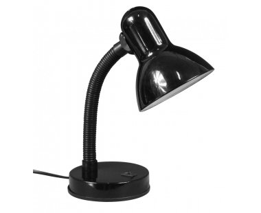 Lámpara flexo de sobremesa muy práctica y económica. Fabricada en metal de color negro. Con brazo flexible y cabeza orientable. Ideal para estudio. Incorpora interruptor en la base. Cable de conexión de 1,5 m. Para bombillas de rosca estándar E-27.