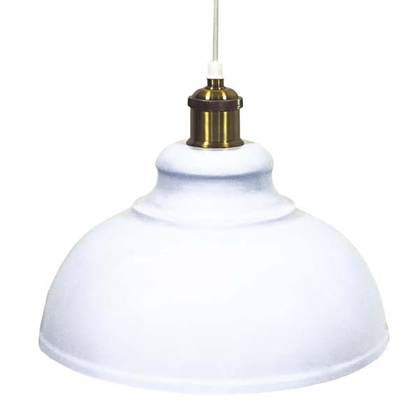 Lámpara de techo con campana de metal blanca de 29cm de diámetro. Portalámparas decorativo color dorado.