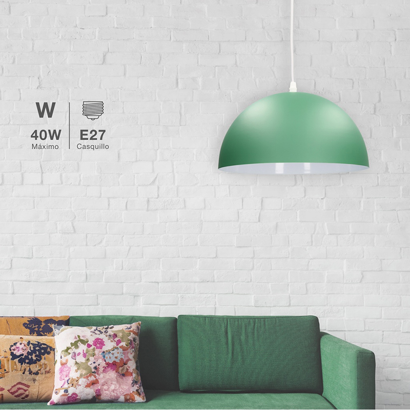 Con casquillo estándar para bombillas de rosca E-27. Recomendamos el uso de bombillas LED. El cable permite ajustar la lámpara a diferentes alturas.
