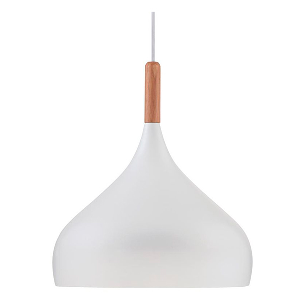 Lámpara de techo de líneas suaves, estilo nórdico, con pantalla de metal en color blanco y embellecedor de madera natural. Su simplicidad y sobriedad hace que combine a la perfección en muchos ambientes. Ideal para iluminar la cocina, el salón, el comedor… Cable redondo blanco. Florón de techo metálico color blanco. Con casquillo estándar para bombillas de rosca E-27. Recomendamos el uso de bombillas LED. El cable permite ajustar la lámpara a diferentes alturas.