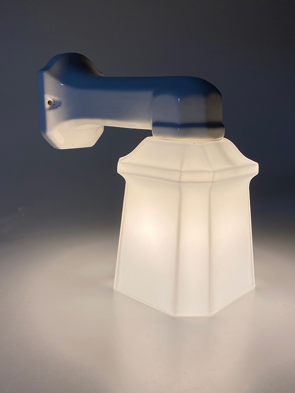 Preciosa lámpara opal de líneas clásicas, con brazo de porcelana. Portalámparas de rosca estándar E-27. Reproducciones auténticas de los años 20 al 50, fabricadas en porcelana con el mismo blanco natural que los originales. Son perfectos para aportar el acento rústico a cualquier baño.