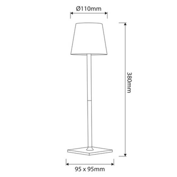 Dimensiones: Ø 110mm x 380mm. Base: 95x95mm