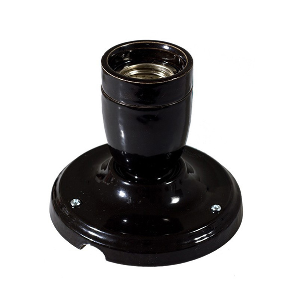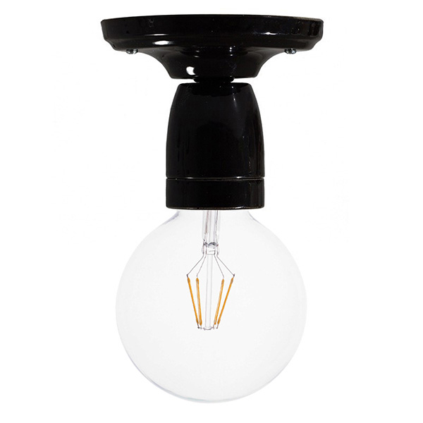 Lámpara de estilo retro fabricada en porcelana de color negro. Se puede aplicar en pared, como aplique, o en techo, como plafón. Ideal para combinar con bombillas decorativas y poder resaltar toda su belleza.