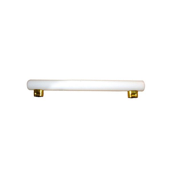 Linestra incandescente (de filamento). Bombilla lineal de 35W con dos casquillos para portalámparas s14s. Cristal blanco opal. Bombilla de luz muy cálida y confortable. Utilizadas bajo muebles en cocinas, en iluminación de espejos y en vitrinas.