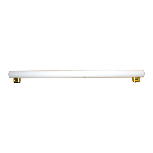 Linestra incandescente (de filamento). Bombilla lineal de 60W con dos casquillos para portalámparas s14s. Cristal blanco opal. Bombilla de luz muy cálida y confortable. Utilizadas bajo muebles en cocinas, en iluminación de espejos y en vitrinas.