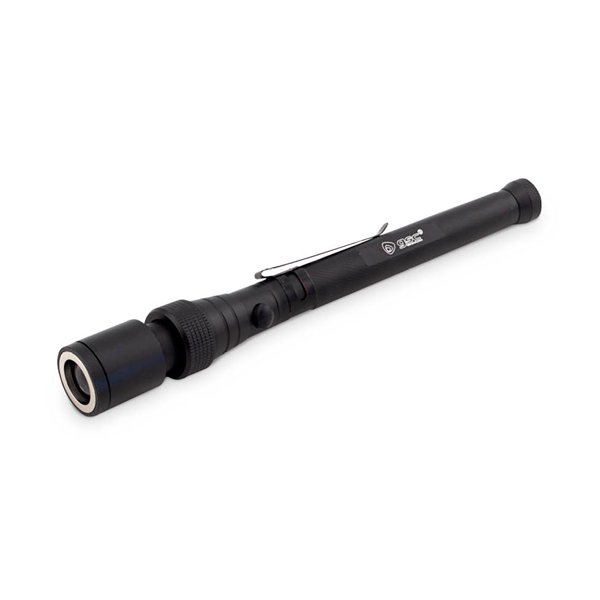 Linterna LED que se convierte en una práctica herramienta para alcanzar pequeños objetos en lugares oscuros de difícil acceso. Dispone de un brazo extensible (telescópico) acabado con un flexo que permite dirigir la luz hacia el lugar deseado. Estirando el cabezal permite hacer zoom, para abrir o cerrar el haz de luz. La base esta imantada para poder fijarla en superficies metálicas y el cabezal también dispone de imán para poder recoger pequeñas piezas metálicas.