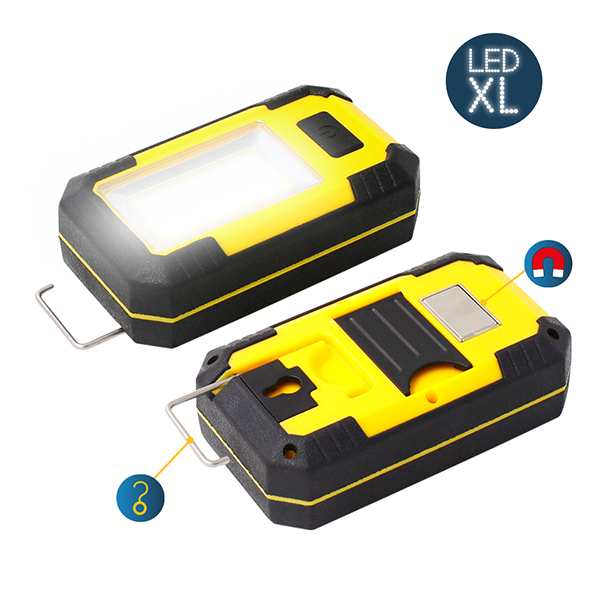 Linterna de alta luminosidad, con un potente LED COB de 8W, ofreciendo 500 lumens, con 20m de alcance. Recargable con cable USB (no incluido). 5 horas de carga ofrecen 6 horas de autonomía.