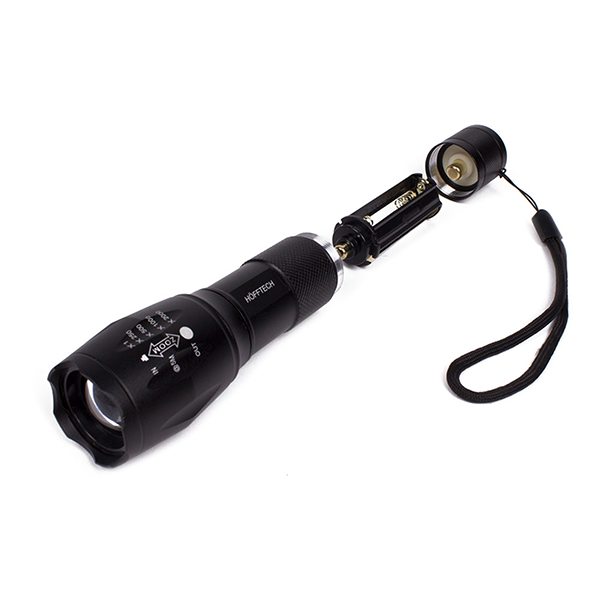 Linterna LED de bolsillo táctica. Superpotente. Cuerpo de aluminio resistente a golpes. 5 posiciones de iluminación diferente. Incluye función estroboscópica para ahuyentar a intrusos o atacantes. Zoom de hasta 2000. Flash con señal SOS. Funciona a pilas
