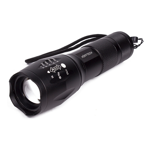 Linterna LED de bolsillo táctica. Superpotente. Cuerpo de aluminio resistente a golpes. 5 posiciones de iluminación diferente. Incluye función estroboscópica para ahuyentar a intrusos o atacantes. Zoom de hasta 2000. Flash con señal SOS. Funciona a pilas