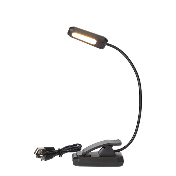 Linterna LED de lectura con pinza para sujeción. Recargable por USB con una autonomía de unas 10 horas. Lámpara linterna de reducido tamaño y muy ligera. Interruptor con tres posiciones, para tres intensidades de alumbrado: 15Lm, 30Lm y 60Lm. Su brazo es un flexo que permite girar la lámpara en cualquier ángulo y darle una forma.
