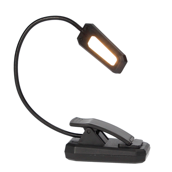 Linterna LED de lectura con pinza para sujeción. Recargable por USB con una autonomía de unas 10 horas. Lámpara linterna de reducido tamaño y muy ligera. Interruptor con tres posiciones, para tres intensidades de alumbrado: 15Lm, 30Lm y 60Lm. Su brazo es un flexo que permite girar la lámpara en cualquier ángulo y darle una forma.