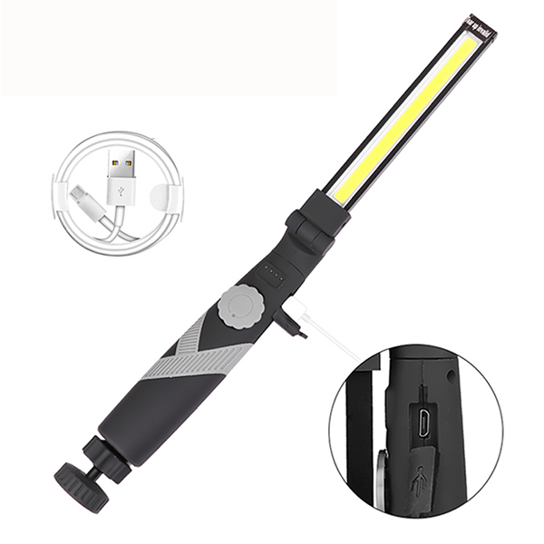 Luz de trabajo con potente luz LED, regulable en intensidad. Batería recargable por USB. Base magnética. Orientable 360º y abatible.