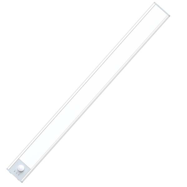 Regleta LED de alto brillo con detección de movimiento. Se puede seleccionar el color del LED (luz blanca, neutra o cálida). Incorpora un sensor crepuscular y de movimiento. Se enciende instantáneamente al detectar una persona, se apaga automáticamente.