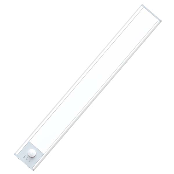 Regleta LED de alto brillo con detección de movimiento. Se puede seleccionar el color del LED (luz blanca, neutra o cálida). Incorpora un sensor crepuscular y de movimiento. Se enciende instantáneamente al detectar una persona, se apaga automáticamente.